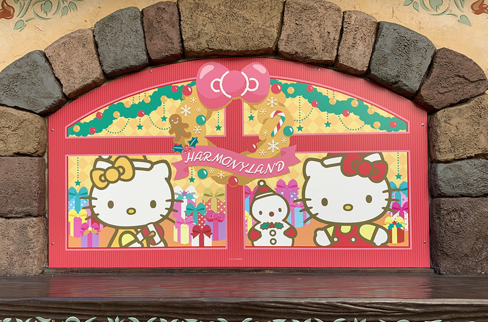 ハローキティに会える人気アトラクション「キティキャッスル」をクリスマス装飾で飾り付け。50周年記念コスチュームとクリスマスコスチュームのハローキティに会えるよ!