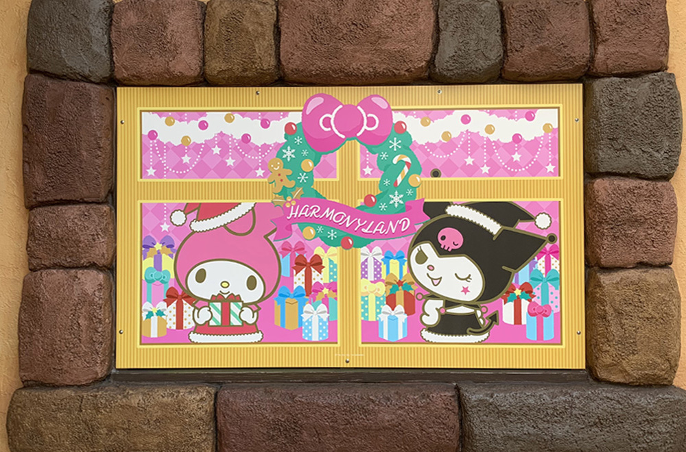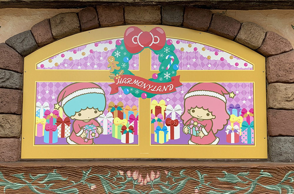 園内ショップの窓枠がクリスマスプレゼントいっぱいのかわいいデザインに!!